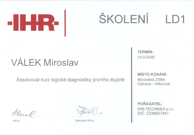 Certifikát Diagnostika